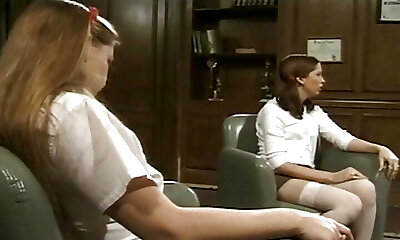 Pretty French lesbian honies enjoying in the classroom