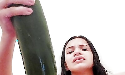Brazilian teen 18+, fucks her poon deep with a big cucumber, and creams her sizzling pussy!