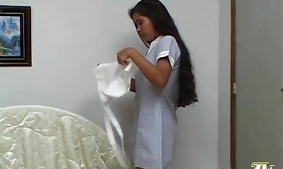 Hot maid girly-girl starpon fuck
