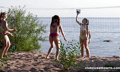 Insanely red-hot girls making out and gobbling each other out on the beach