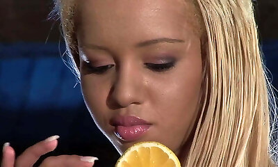 Lesbians gobble and suck on banana before tasting each other's twats