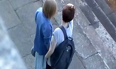 Two German Lesbian Teen Caught Licking in Public