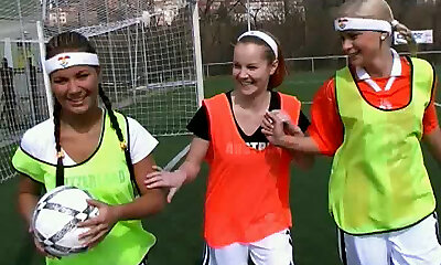 Kicking the ball felt dull so they ended up in a superb lesbo threeway pussy eating sesh