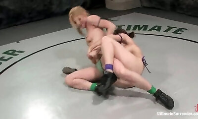 Lesbian Strapon Fucking for Idiot of Wrestling Fight